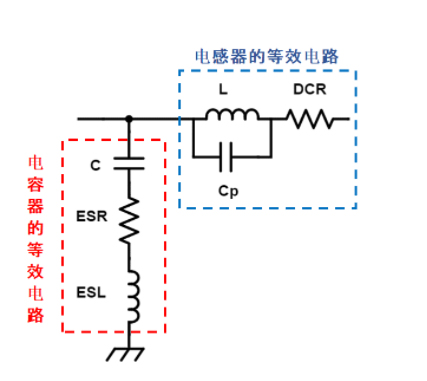 电容器若只是C成分,频率越高阻抗低,噪声吸收效果越好,但在实际的电容器上则根据ESR来决定阻抗的下限值,并且阻抗在高频域会随ESL而升高,变得不易吸收噪声。 此外,电感若只是L成分,频率越高阻抗高,噪声隔断效果越好,但实际上阻抗会随电感器中所包含的Cp而在高频域下降,噪声的隔断效果下降。